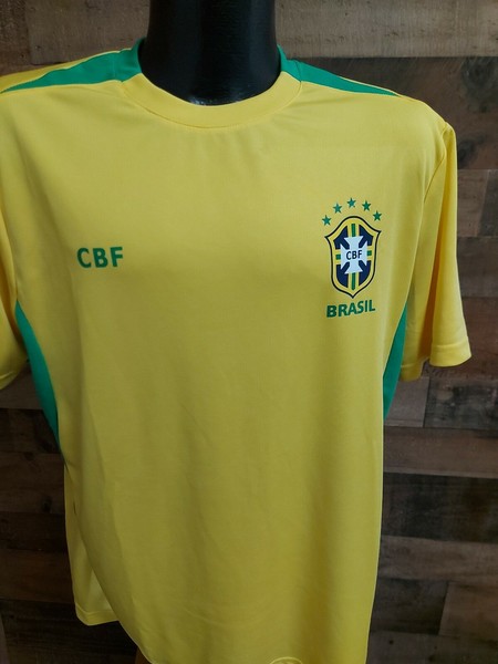 CBF Brasil Mens Medium Green Yellow Short Sleeve Golf Tshirt