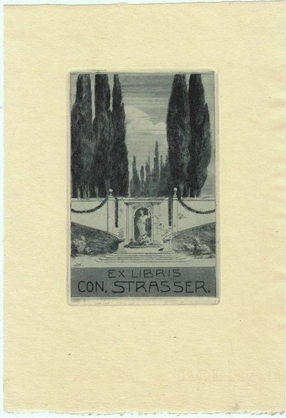 Exlibris Bookplate Etching Conrad Strasser 1876-1954 Antique Cypresses Ipse