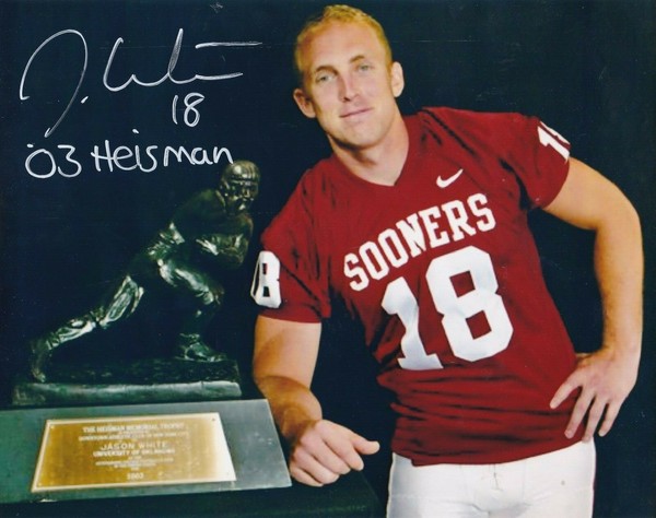 JASON WHITE OKLAHOMA SOONERS HEISMAN 03 ACTION SIGNED 8x10